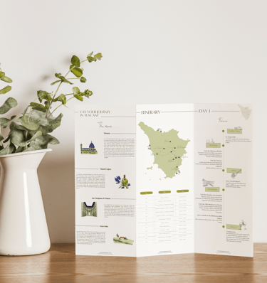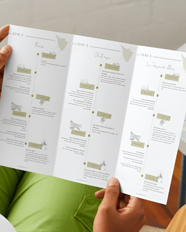 The first version is a detailed infographic in PDF, with each page corresponding to a different day of the trip.