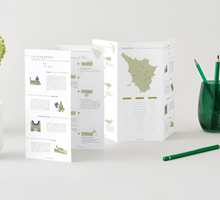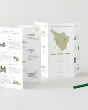 The second version is a more compact document that groups all the days together and, when printed double-sided, takes the form of a brochure.